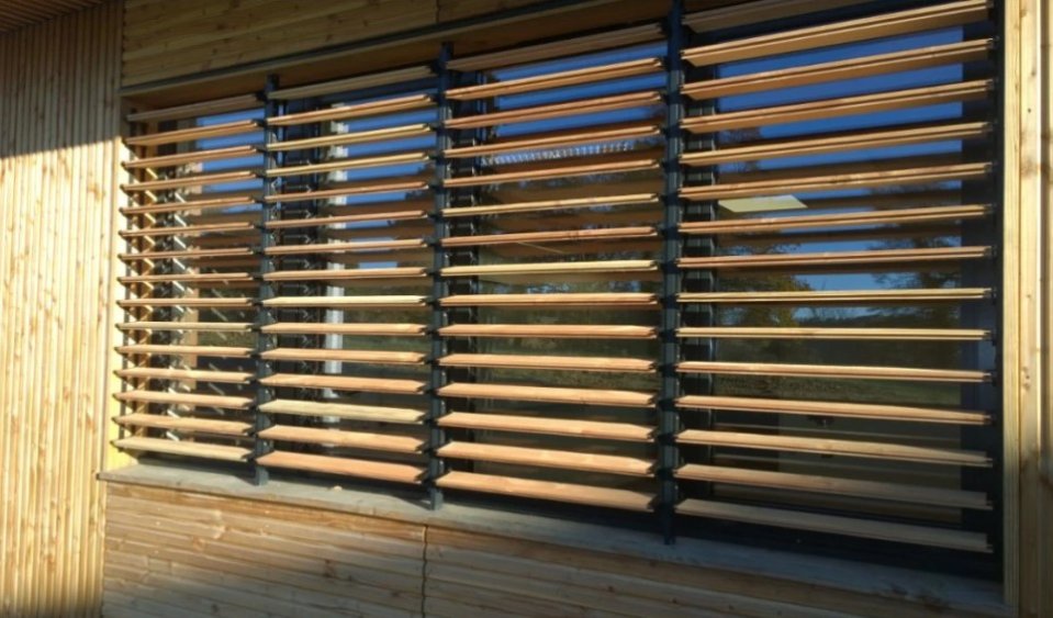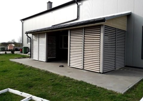 • Posuvné řešení – například posuvné slunolamy nebo posuvné stínící panely, které umožní flexibilní využití prostoru a regulaci světla.